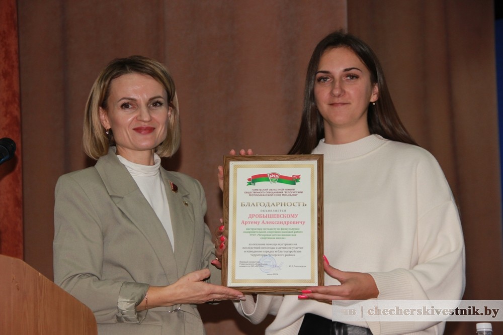С каждым годом подтверждает свою значимость и актуальность волонтерское движение. Молодые люди всегда в центре событий, первыми приходят они на выручку и в сложные периоды. Так было и в июле, когда по республике прошелся разрушительный ураган. БРСМ всегда отмечает вклад неравнодушных людей. Например, инструктору-методисту детско-юношеской спортивной школы Артему Дробышевскому вручена благодарность областного комитета за активную помощь в разработке ветровально-буреломных лесосек, пострадавших в результате разгула стихии.