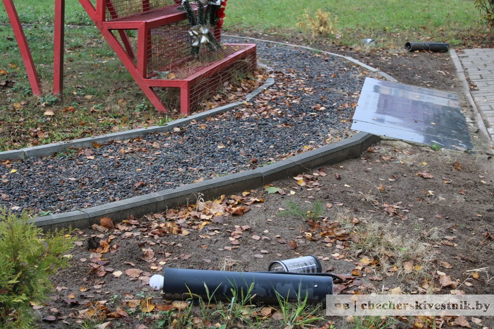 У памятника воинам-интернационалистам в Чечерске вандалы уничтожили три элемента ночной подсветки, причем одна из конструкций была вырвана «с корнем».