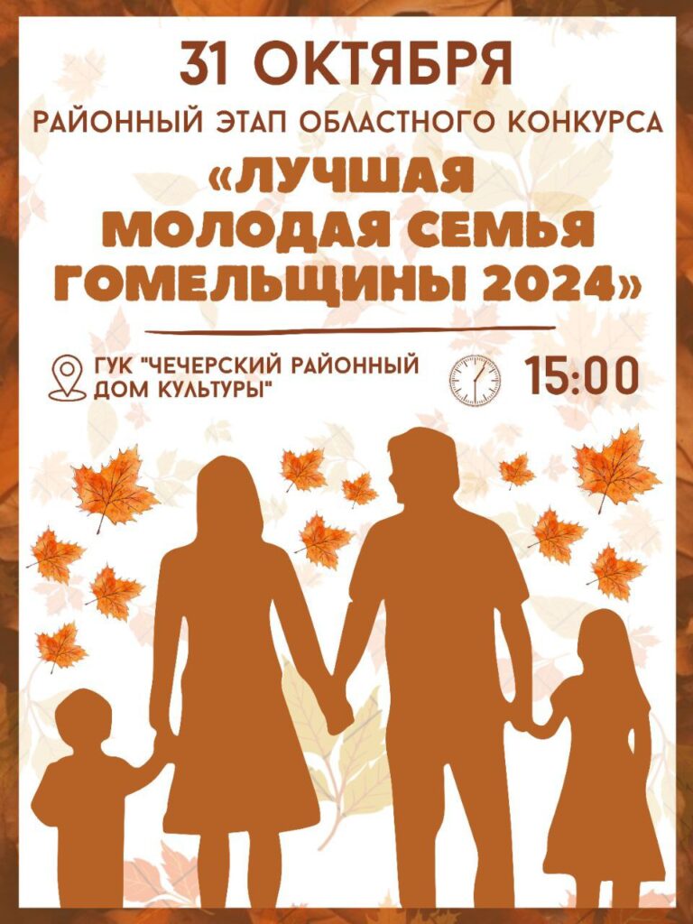 Общество В Чечерске на районном этапе конкурса выберут лучшую молодую семью Гомельщины 28.10.2024 Иллюстративное фото из открытых источников. 31 октября в Доме культуры пройдет районный этап областного конкурса “Лучшая молодая семья Гомельщины-2024”. Начало в 15.00. Поделиться информацией: Continue Reading Previous Вопрос обрезки и удаления деревьев, растущих вблизи ЛЭП в населенных пунктах, обсудили на аппаратном совещании облисполкомаNext Сотрудники ГАИ провели акцию “Первые каникулы. Стань заметнее в темноте!” для чечерских школьников More Stories Общество Хотите помочь животным деньгами? Узнайте, что говорит закон 18.04.2026 Общество Палата риелторов зарегистрирована в Беларуси 18.04.2026 Общество Санитарная, формовочная, омолаживающая обрезка: как правильно ухаживать за зелеными насаждениями 18.04.2026 Добавить комментарий Отменить ответ Ваш e-mail не будет опубликован.Комментарий Имя E-mail Сайт Δ Этот сайт использует Akismet для борьбы со спамом. Узнайте, как обрабатываются ваши данные комментариев.