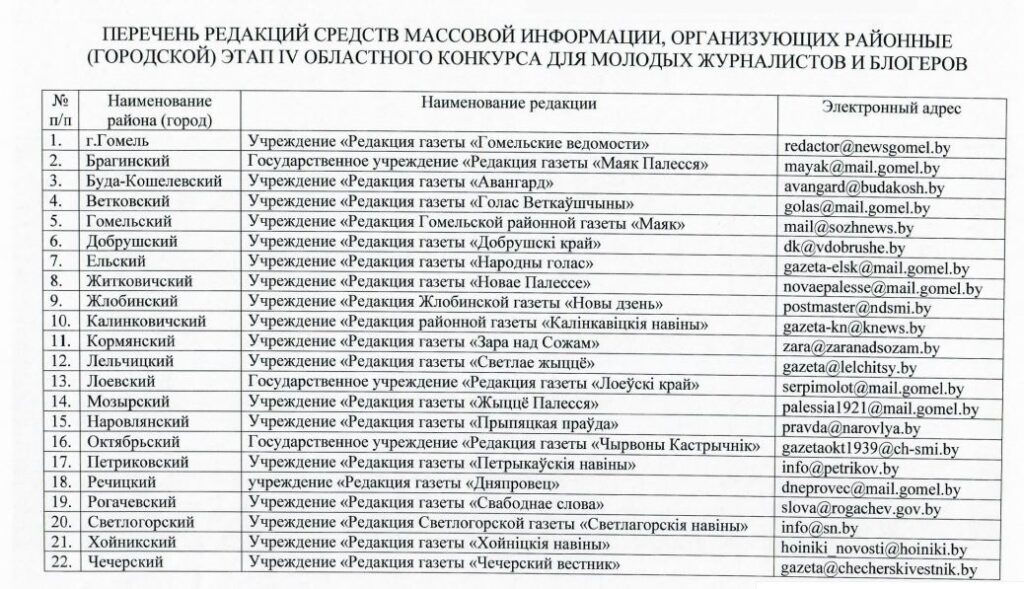 Победители и призеры конкурса будут приглашены на Слет молодых журналистов и блогеров Гомельской области.