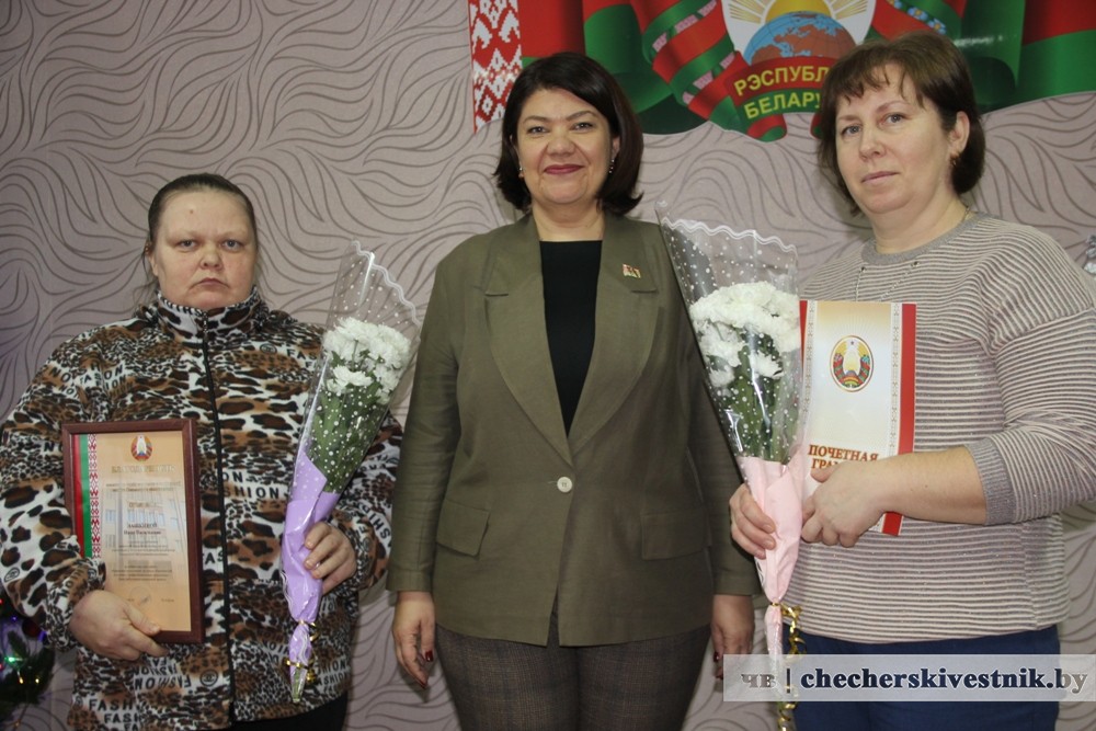 Почетной грамоты Комитета по труду, занятости и социальной защите Гомельского облисполкома удостоена соцработник Светлана Потеева, а благодарности – Нина Лашкина. Цветы и искренняя признательность за добросовестный труд, сострадание чужой боли и служение людям, оказавшимся в трудной жизненной ситуации, были высказаны также в адрес работников по надомному обслуживанию Раисы Фатик, Анжелы Степановой, Валентины Афанасенко, сиделки Олеси Приступа и руководителя кружка ТЦСОН Натальи Михалковской.
