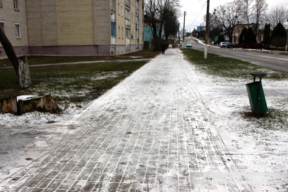Неустойчивая зимняя погода доставляет массу неудобств чечерянам. Жители города жалуются на несвоевременную подсыпку пешеходных дорожек со стороны коммунальников.