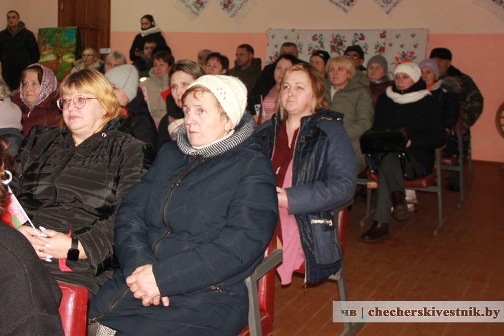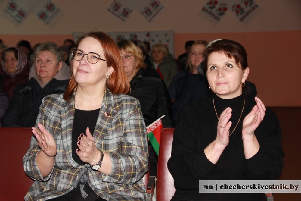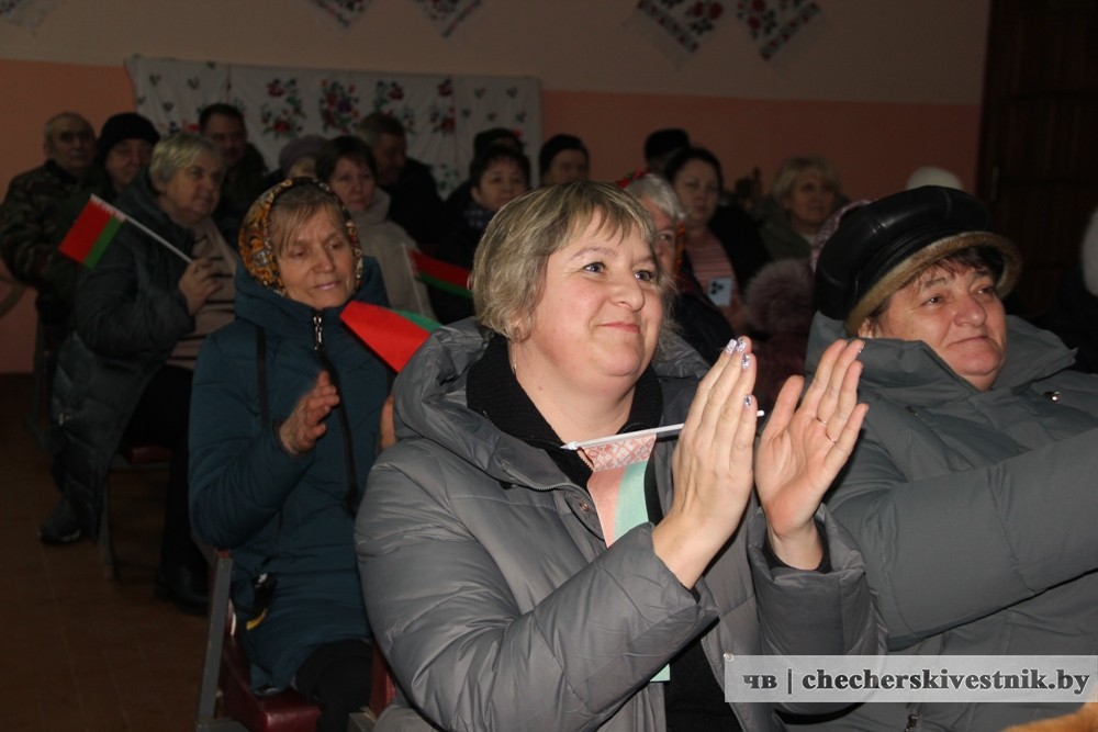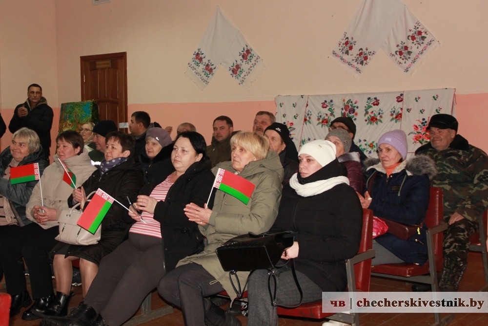 Первые аккорды мероприятия прозвучали для жителей Полесья. В местном Доме культуры собрались жители агрогородка. Приветствовала собравшихся член Белорусской партии “Белая Русь” Елена Ковалева. Она произнесла слова о том, как прекрасна и удивительна наша Беларусь, какие созданы населению условия для полноценной жизни и реализации своих трудовых и творческих возможностей.