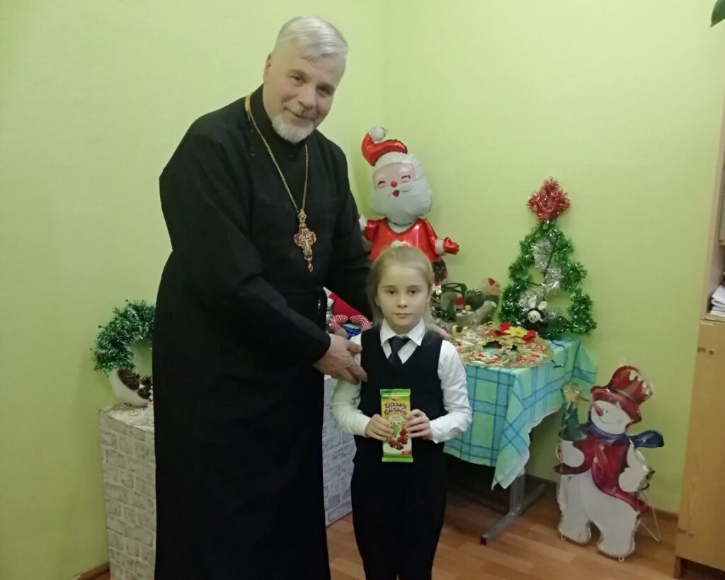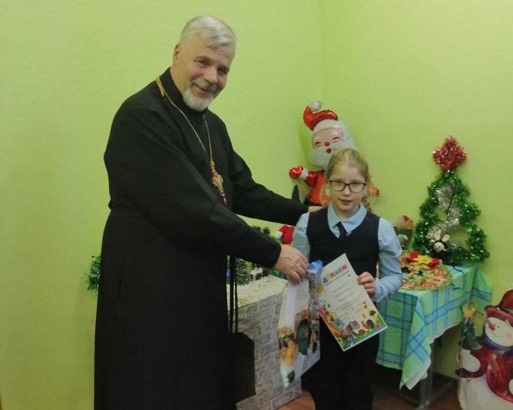 Победителем стала Злата Тимохина, ей вручена Почетная грамота. Но и остальные участники не остались без внимания. Настоятель прихода храма иерей Александр Хамылевский всем ребятам вручил в подарок сладости. Также батюшка призвал школьников быть добрыми и прилежными.