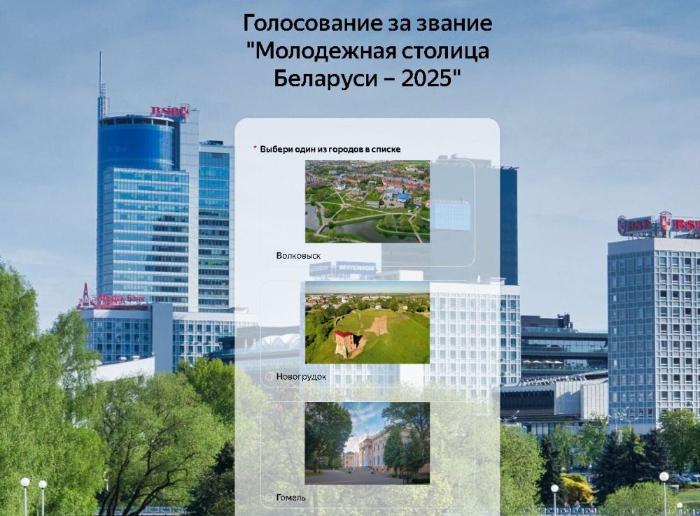 Стартовало онлайн-голосование за звание самой молодежной столицы страны. В начале этого года конкурсная комиссия отобрала четырех претендентов: Волковыск, Гомель, Горки и Новогрудок.