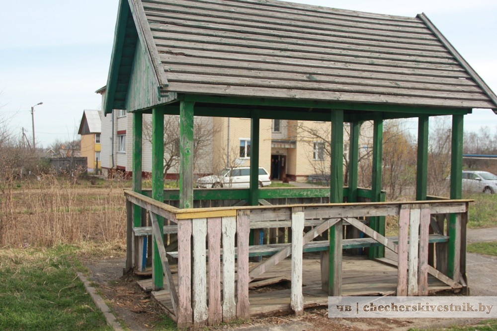 В такой беседке, как в микрорайоне Дзержинский в Чечерске, не посидишь