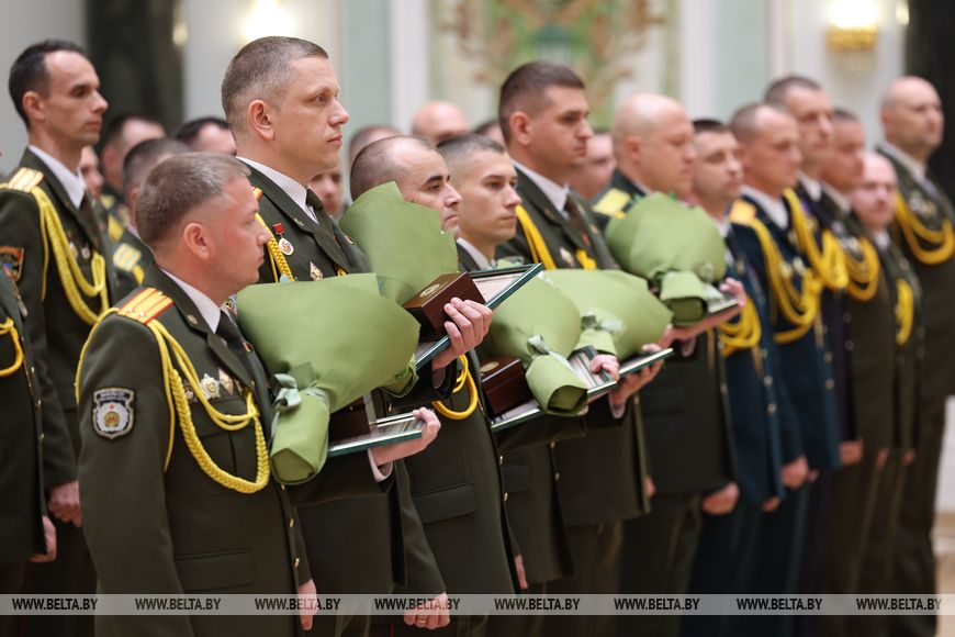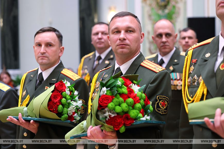 За отличные успехи в учебе и образцовое исполнение воинского долга Александр Лукашенко вручил выпускникам высших военных учебных заведений благодарности Президента.