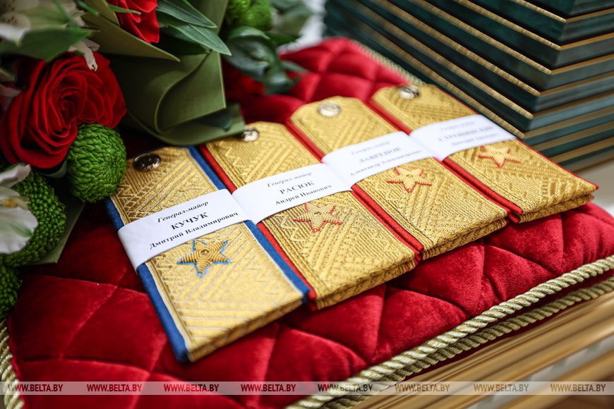 Погоны генерал-майора вручены Дмитрию Кучуку, Дмитрию Стрешинскому, Андрею Расюку и Александру Лавренову.