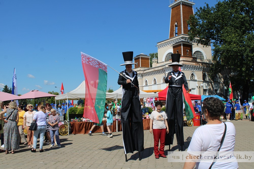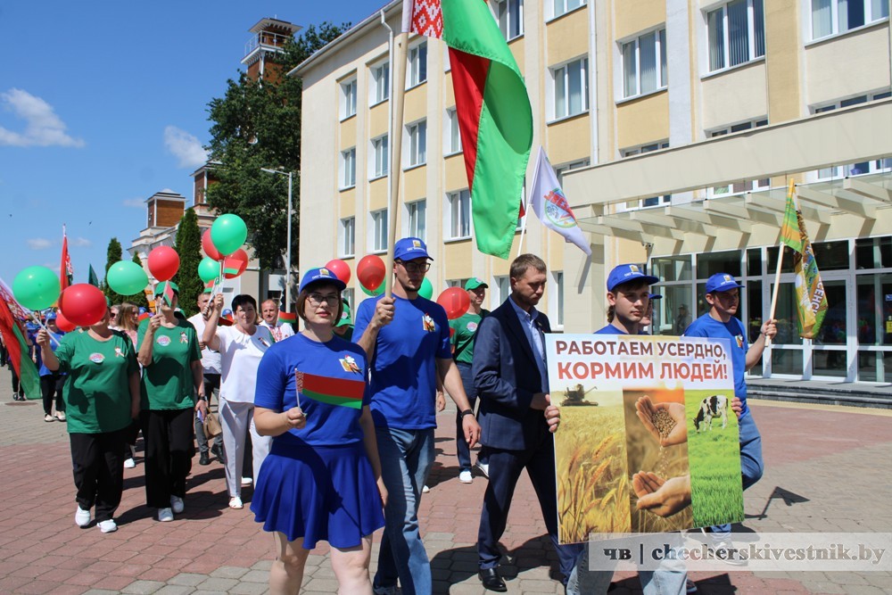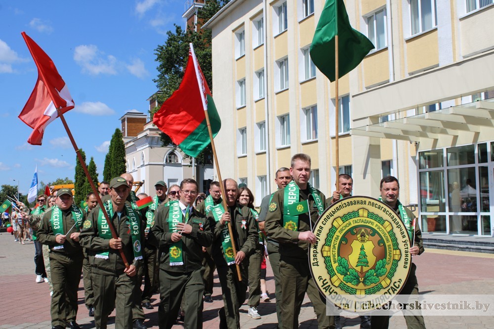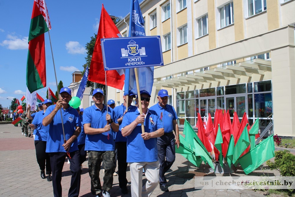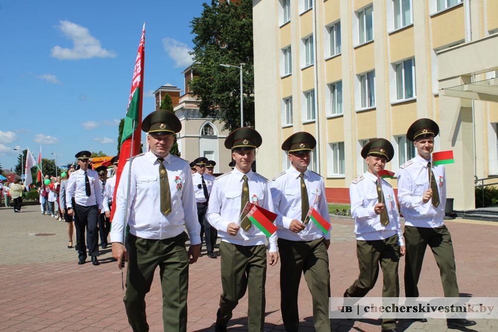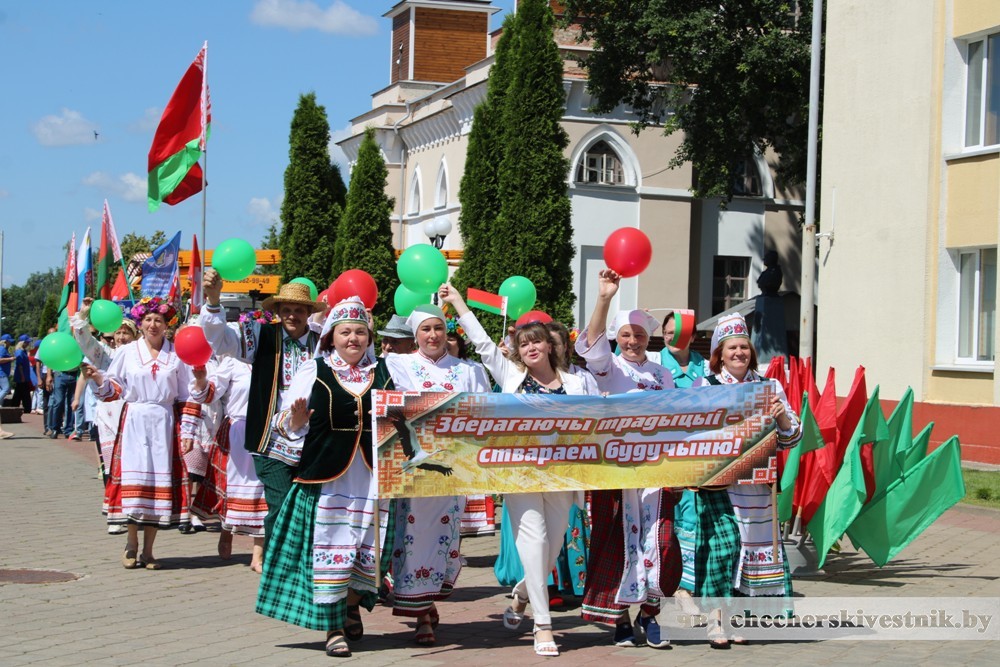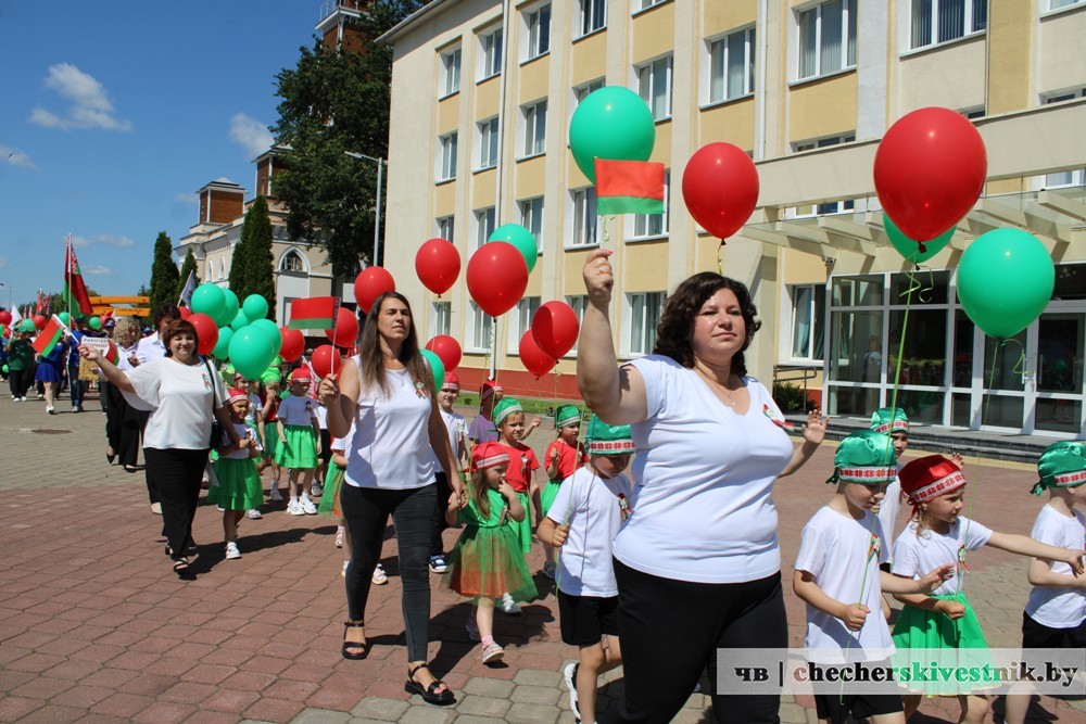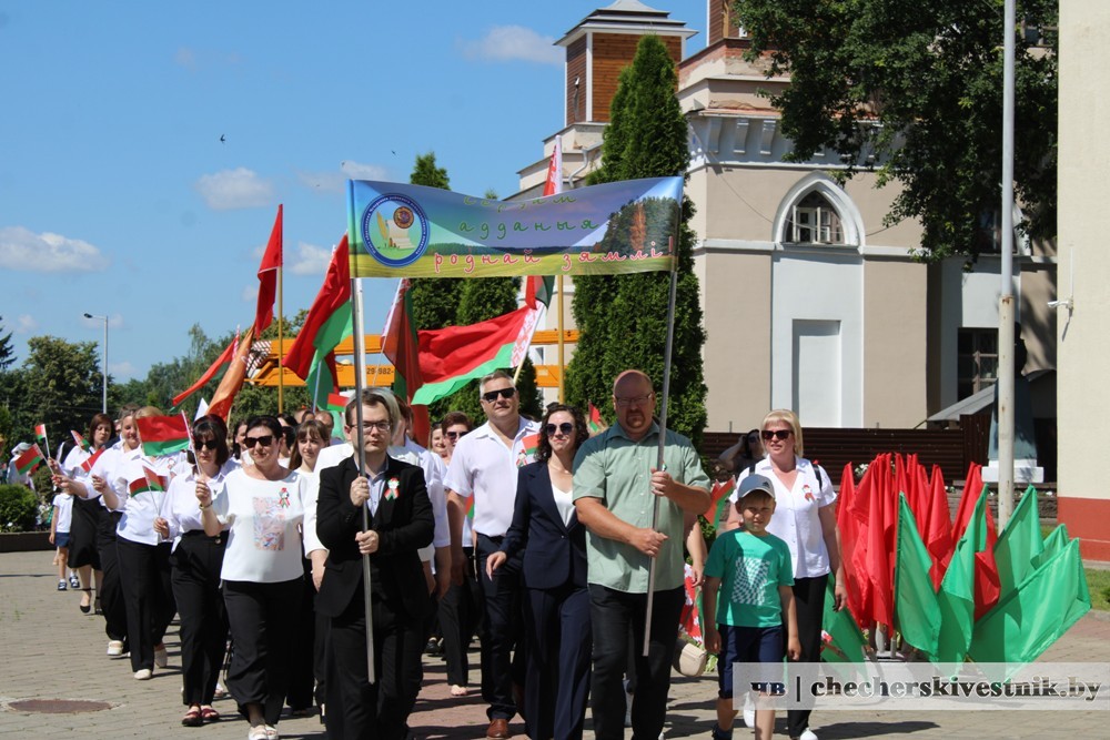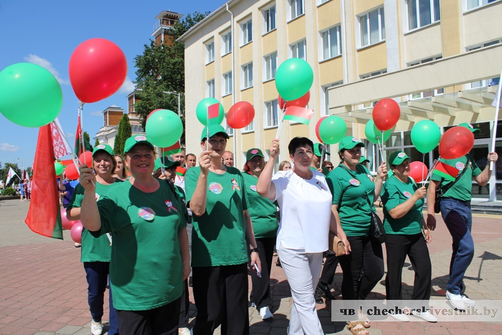 Масштабное празднование Дня Независимости Беларуси в Чечерске началось с яркого шествия трудовых коллективов и общественности.
