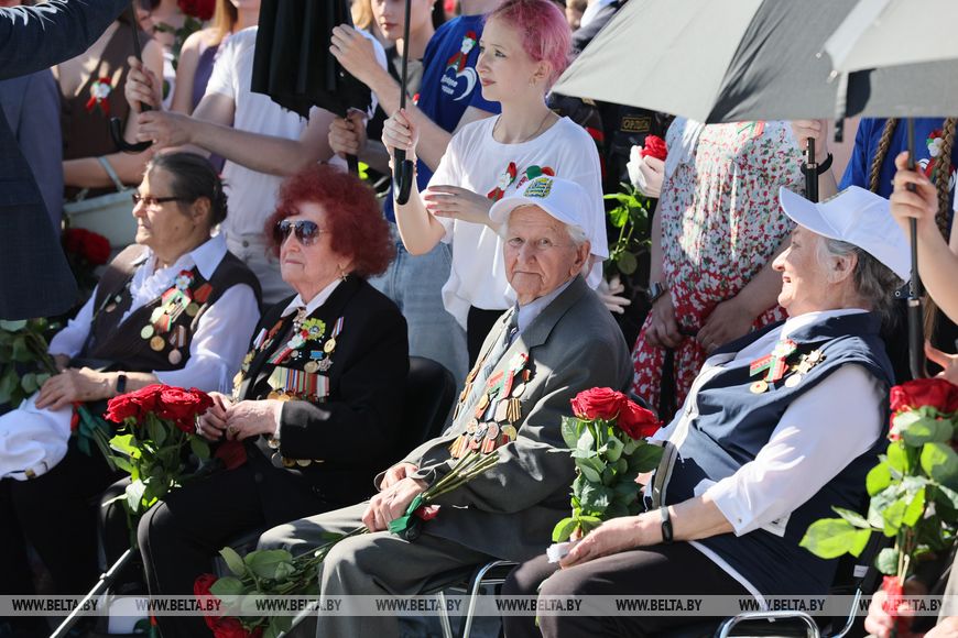 “Огромное спасибо от всех нас тем, кто до этой минуты не дожил. В память о них такую Беларусь мы должны сохранить, – обратился белорусский лидер к ветеранам. – Многие из нас, особенно молодежь, чувствуют какие-то недостатки, чего-то не хватает: то картошка, то еще что-то. Но вы, и мы в том числе, понимаем, что это мелочи по сравнению с тем, что пришлось пережить в молодости вам и тем, которых сегодня нет. Поэтому это самое простое: картошка у нас будет. Она уже есть. Здоровья вам, живите долго! Вы – это не только память. Вы – будущее нашей страны. Спасибо вам! За вами стоят наши герои – военные, которые совсем недавно отстояли страну, подавив мятеж, которые нашу Беларусь никому не отдадут”.