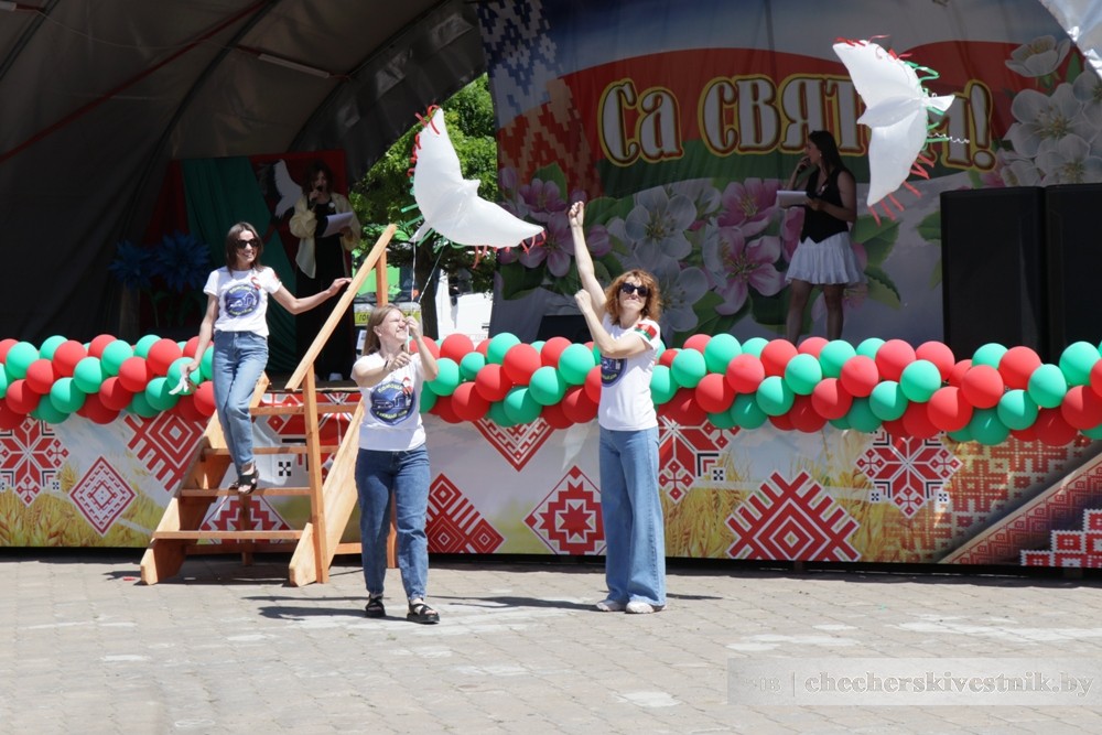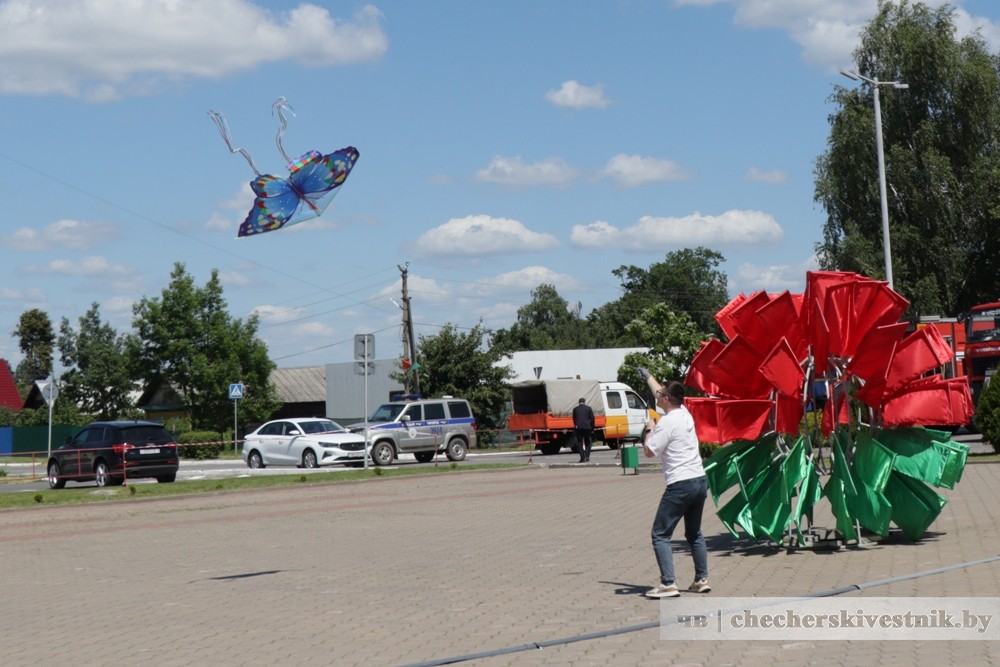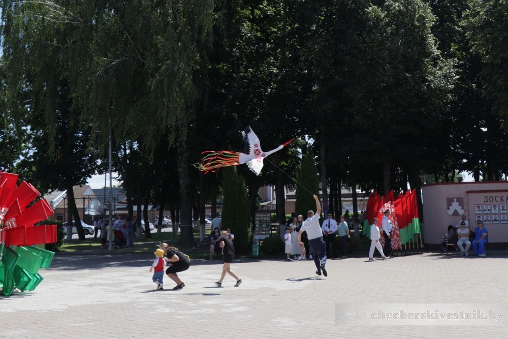 Праздник – время творческих состязаний. На главной площади Чечерска прошел районный конкурс “Небесные флаги”.