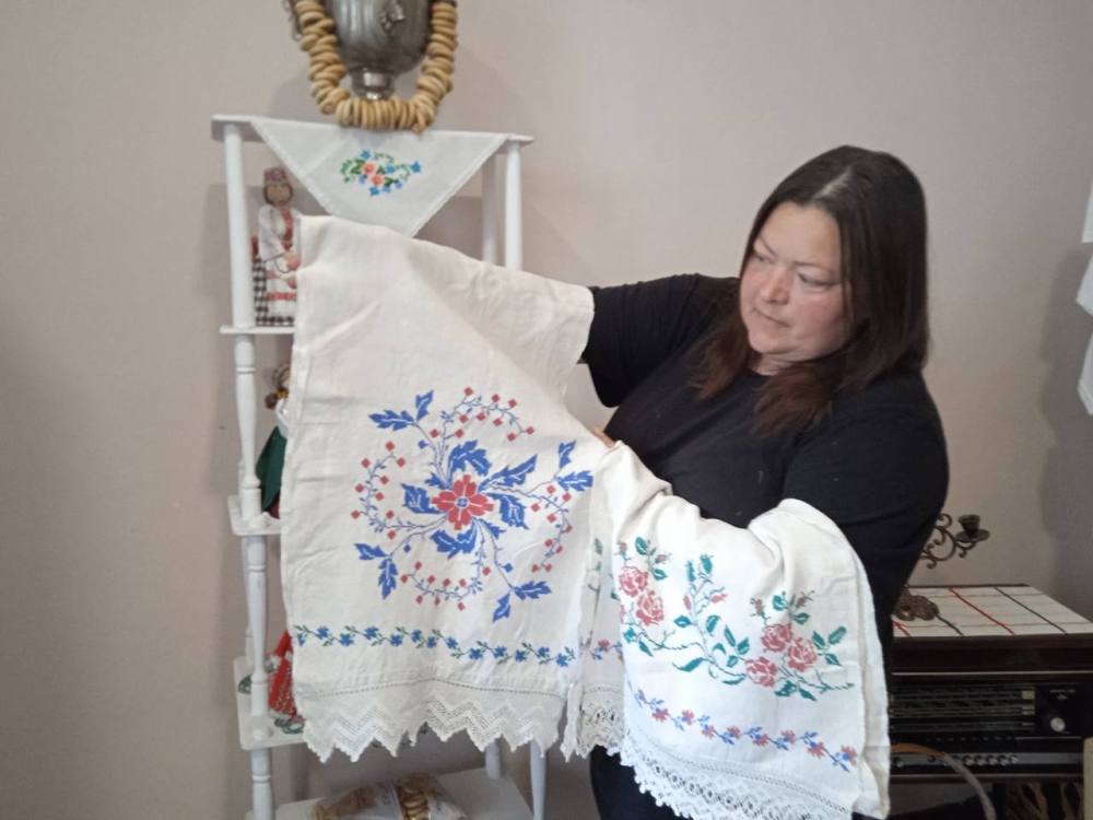 Здесь всегда рады работам талантливых жителей района. Недавно Елена Хурбатова из Мотневич передала в центр вышитые крестиком льняные ручники своей свекрови Марии Романовны Шумигай.