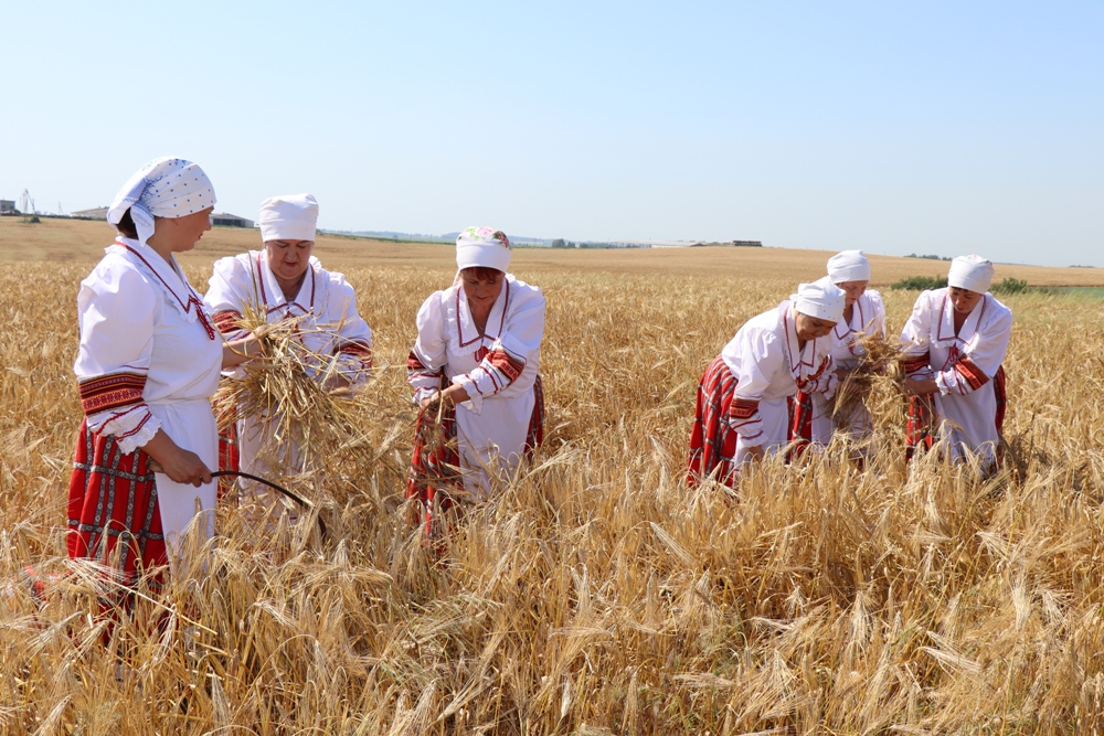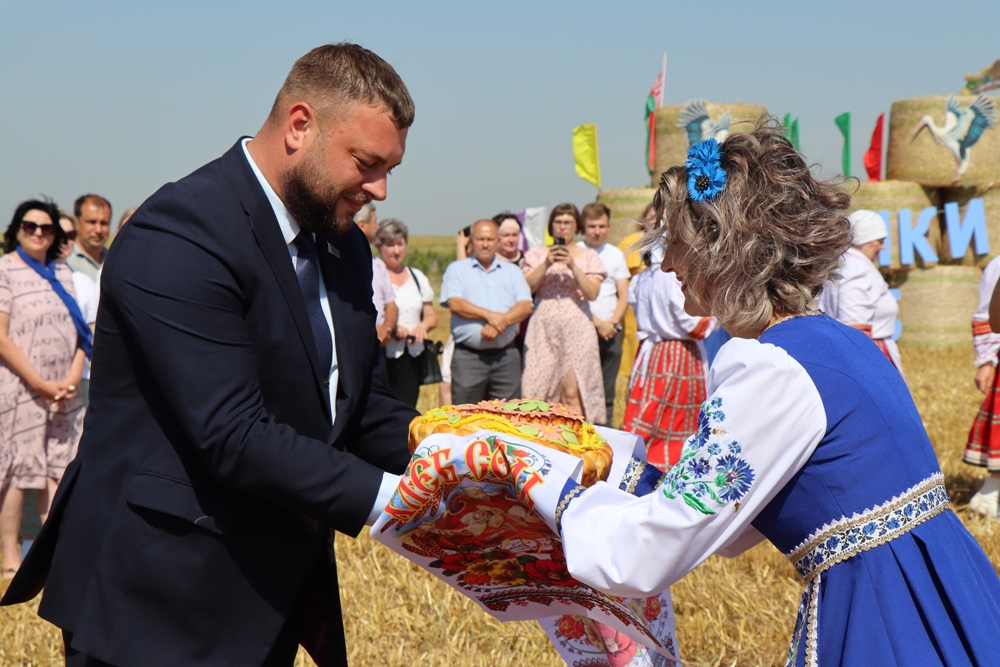 Считается, что «Зажинки» дарит ниве плодородие, а колосьям – силу быстрее наливаться и созревать. И пусть сегодня уборка урожая полностью механизирована, чтобы сохранить связь с традициями предков, первые колосья серпом срезали женщины. Связанный из колосьев сноп, как символ надежды на богатый урожай, был торжественно передан хозяину Чечерской земли – главе района Сергею Гайкову.