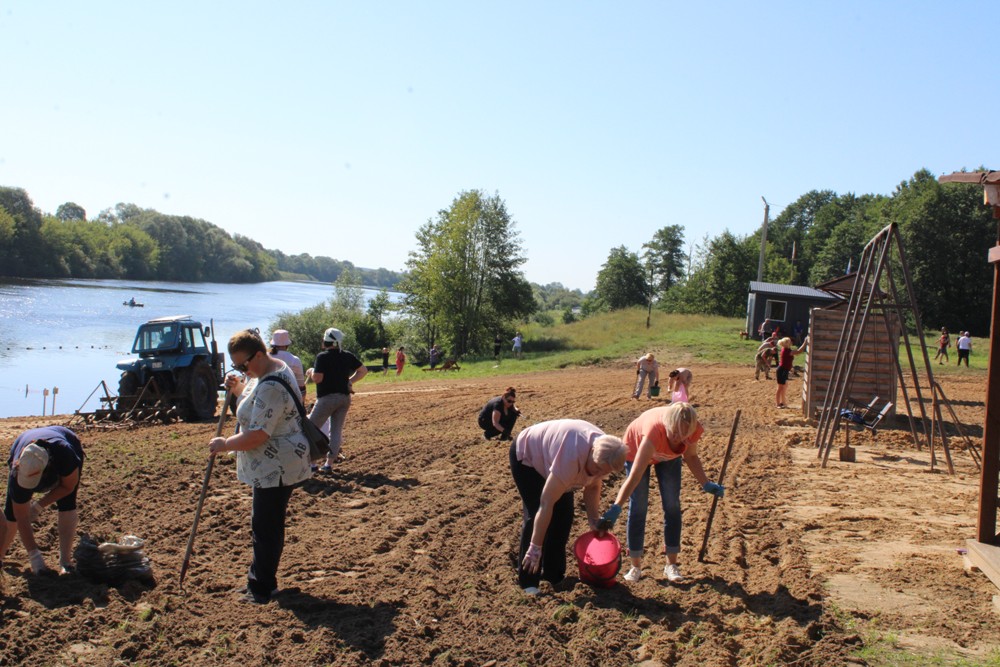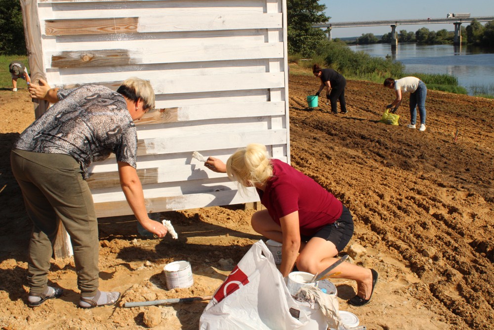 На глазах преображается пляж на Соже возле агрогородка Вознесенский: здесь устанавливают новые беседки и теневые навесы, благоустраивают прибрежную зону, на очереди — озеленение.