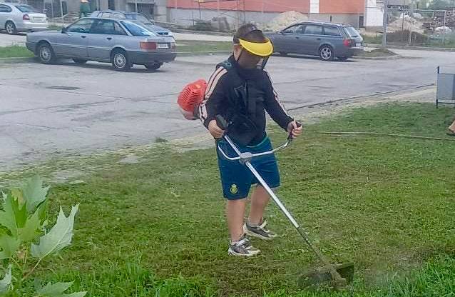 8-летний чечерянин Максим Быковский умеет управляться с бензиновой косой