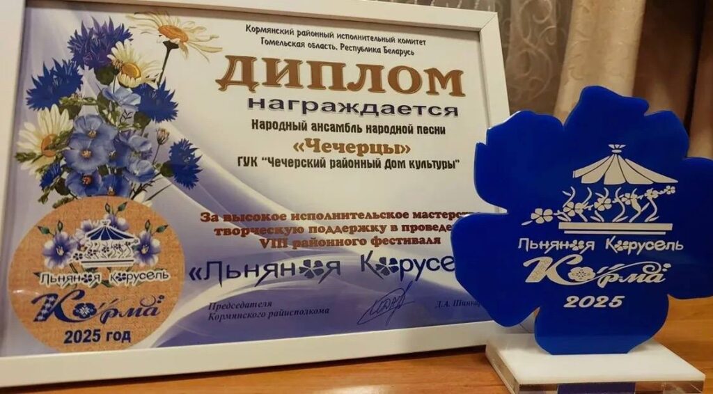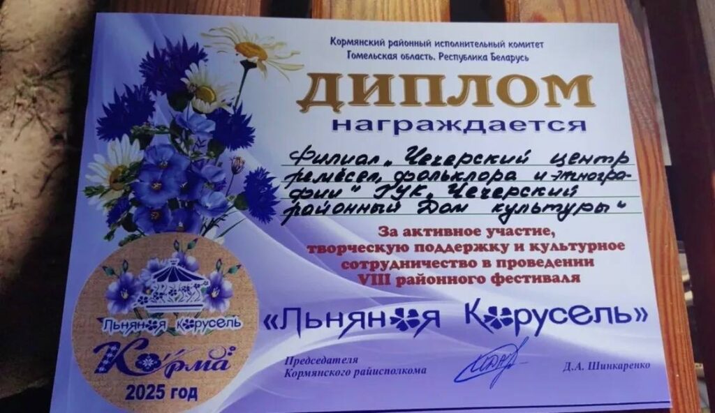 Народный ансамбль народной песни «Чечерцы» и работники центра фольклора и этнографии продемонстрировали богатое культурное наследие нашей местности и получили заслуженные Дипломы участников фестиваля «Льняная карусель».