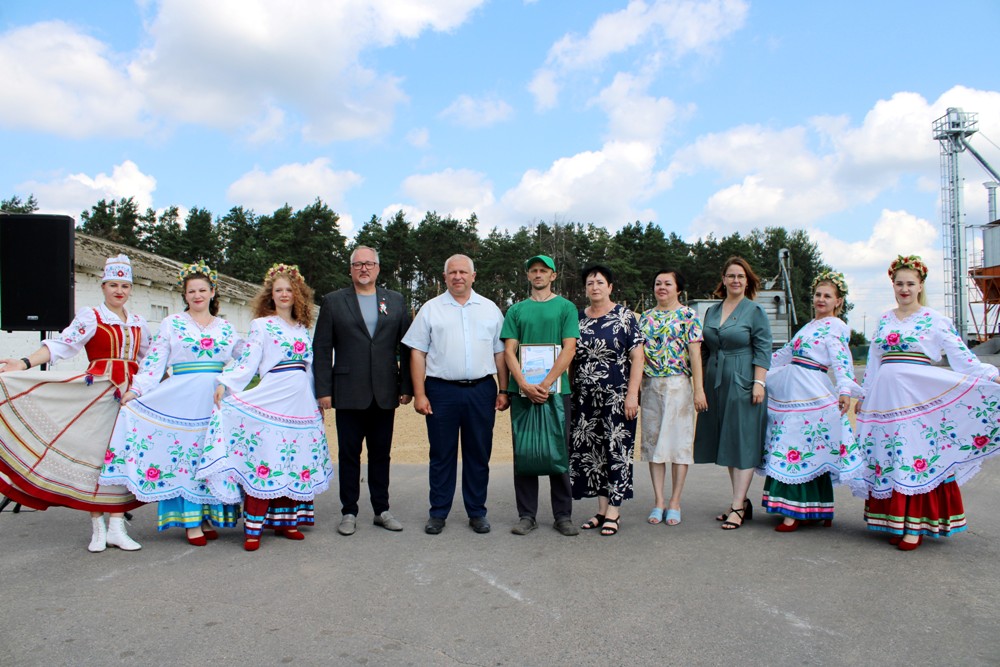 К поздравлениям присоединился заместитель председателя Гомельского областного отделения Белорусского фонда мира Владимир Восарев, отметив, что труженики данного хозяйства уверенно ведут жатву и что впереди у них еще немало побед.