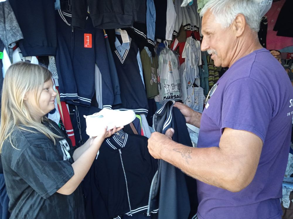 Классика в моде при любой погоде – такое выражение сразу приходит на ум, когда видишь палатки с одеждой и обувью. Школьникам рекомендован деловой стиль, это дисциплинирует и развивает хороший вкус. Но деловой стиль не значит скучный. На рынке просто разбегается взгляд. На вешалках пиджаки, жилетки, джемперы, брюки, юбки, спортивные костюмы. Все в красивых тонах, есть вещи хоть и сдержанного, но оригинального кроя.