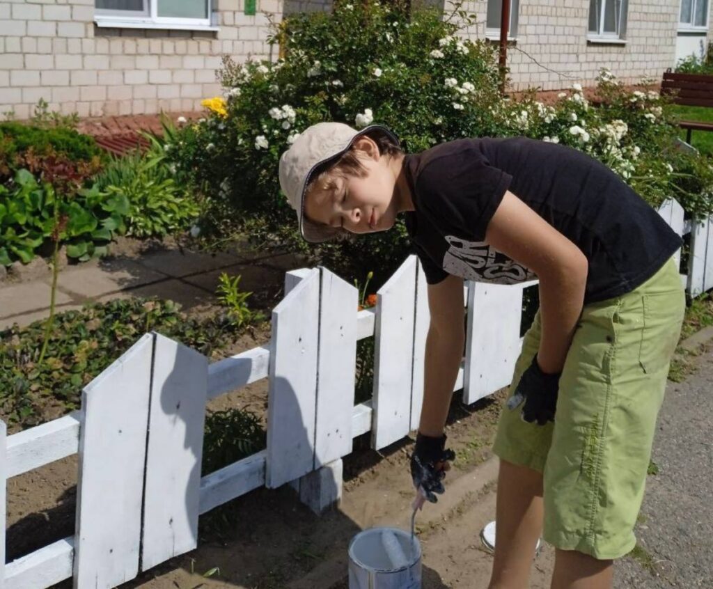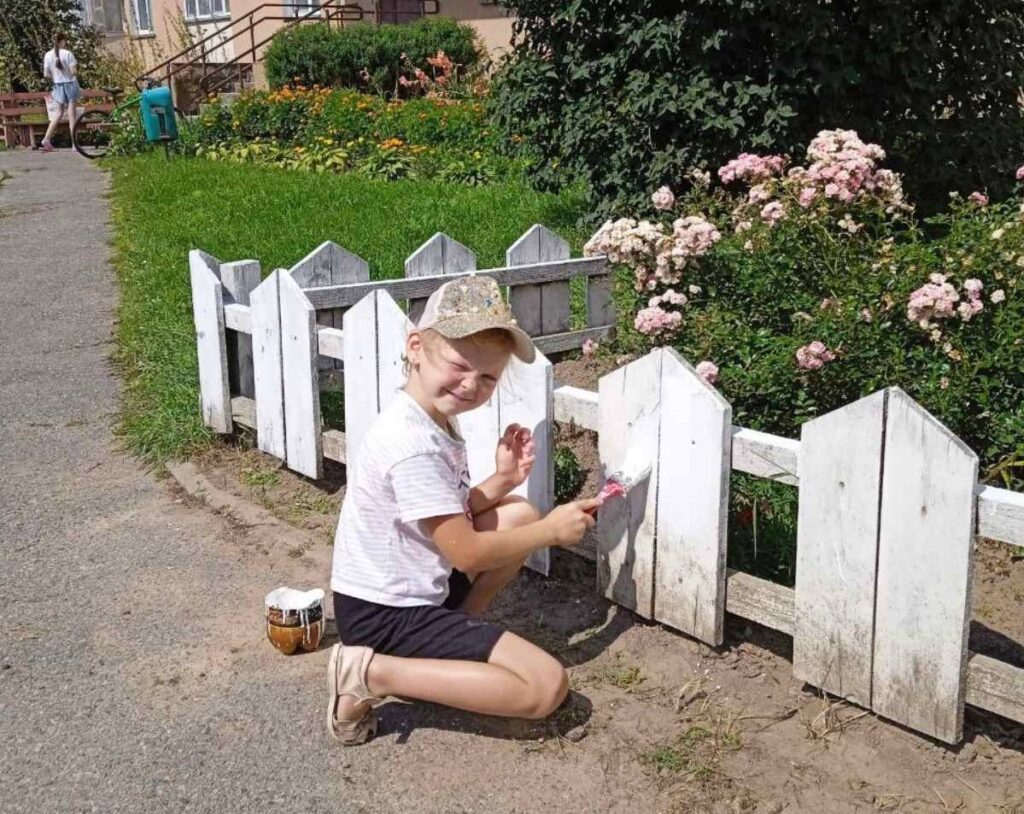 Вооружившись нехитрым инвентарем, брат с сестрой благоустроили клумбу, отремонтировали ограждение. А чтобы цветочное разнообразие еще больше притягивало взгляд прохожих, ребятишки взяли в руки кисти и окрасили изгородь в белоснежный цвет.