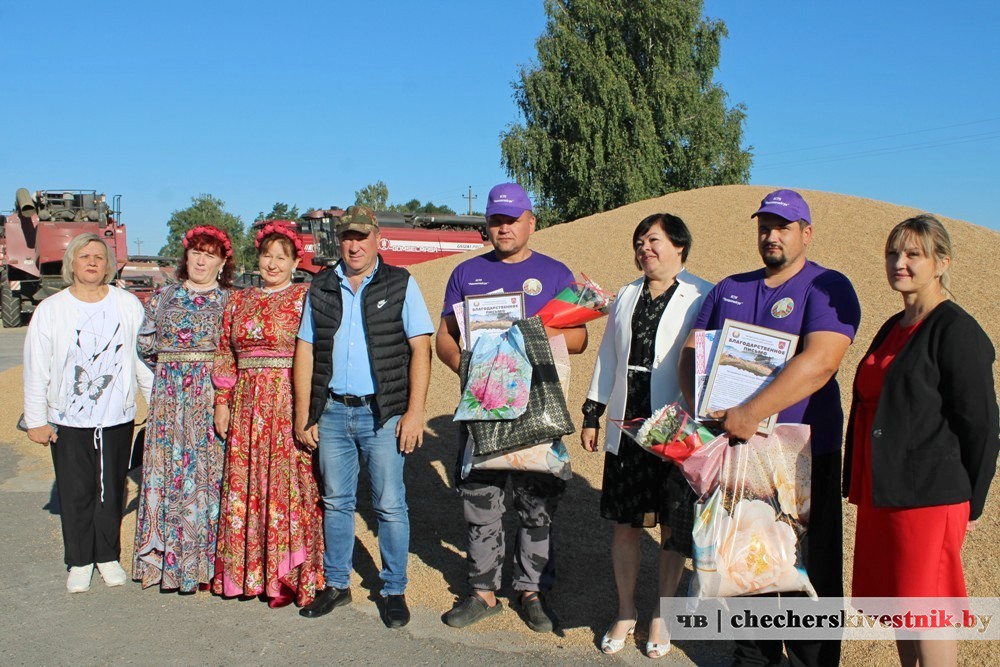 Благодарственные письма, подарочные сертификаты, цветы, рукопожатия и душевные поздравления с достижением в 1000 тон намолота от руководителя хозяйства Владимира Блатуна, председателя профсоюза работников АПК Анжелики Кравченко и председателя местного сельисполкома Оксаны Ковгановой привнесли в этот день нотку позитива и настроения, а также дали положительный заряд энергии.
