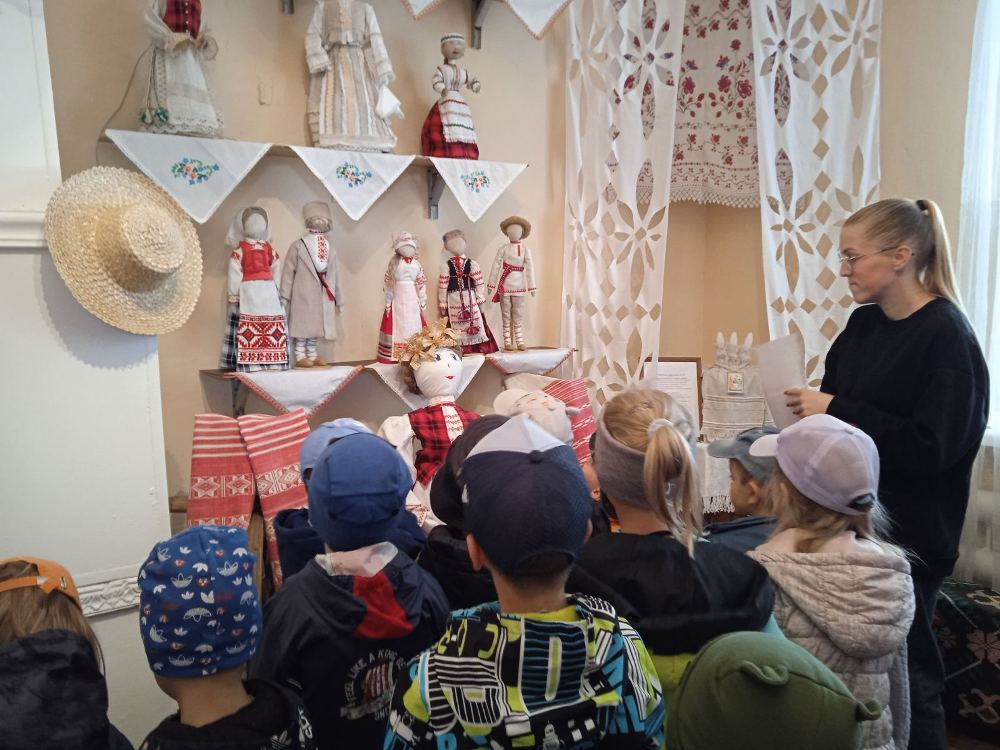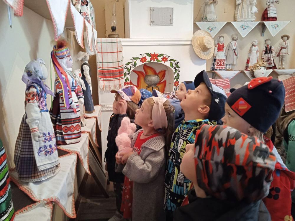 В музейной комнате “Белорусской ляльки”, оформленной в стиле крестьянского быта, для малышей из детсада № 2 провели занятие по созданию интерьерных кукол. Мальчики и девочки узнали о том, что куклы были не только украшением, но и имели сакральный смысл – несли функции оберега, символизировали семейное благополучие. Мастера Галина Лимонтова и Екатерина Елескина рассказали и показали, как создаются эти изделия.