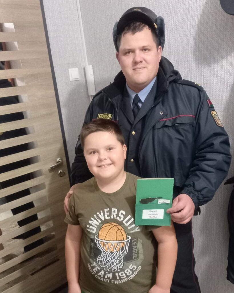 Показывает отец и пример ответственного отношения к служебному долгу. Евгений Михайлович – милиционер группы милиции Жлобинского отдела Департамента охраны Министерства внутренних дел Беларуси. Его трудовые обязанности – это напряженная комплексная деятельность, включающая защиту объектов различных форм собственности, обеспечение правопорядка на охраняемых объектах, патрулирование, предупреждение и профилактику преступлений, обеспечение спокойствия граждан. Работа требует максимального вложения усилий. И это тоже яркий пример для Максима, который гордится своим папой – умным и сильным в строгой и красивой милицейской форме.