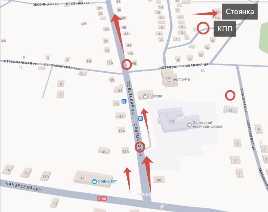 Контрольно-пропускные пункты будут находиться на пересечении улиц Новая – Первомайская – Советская; на пересечении улицы Советской и Чечерской; на ул. Залесская (за зданием школы).