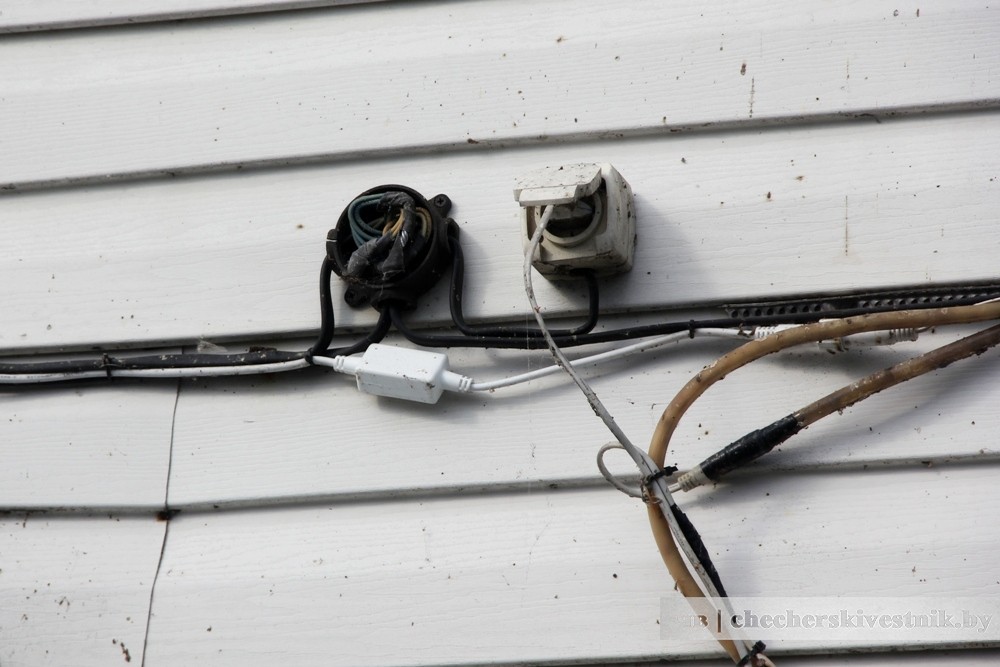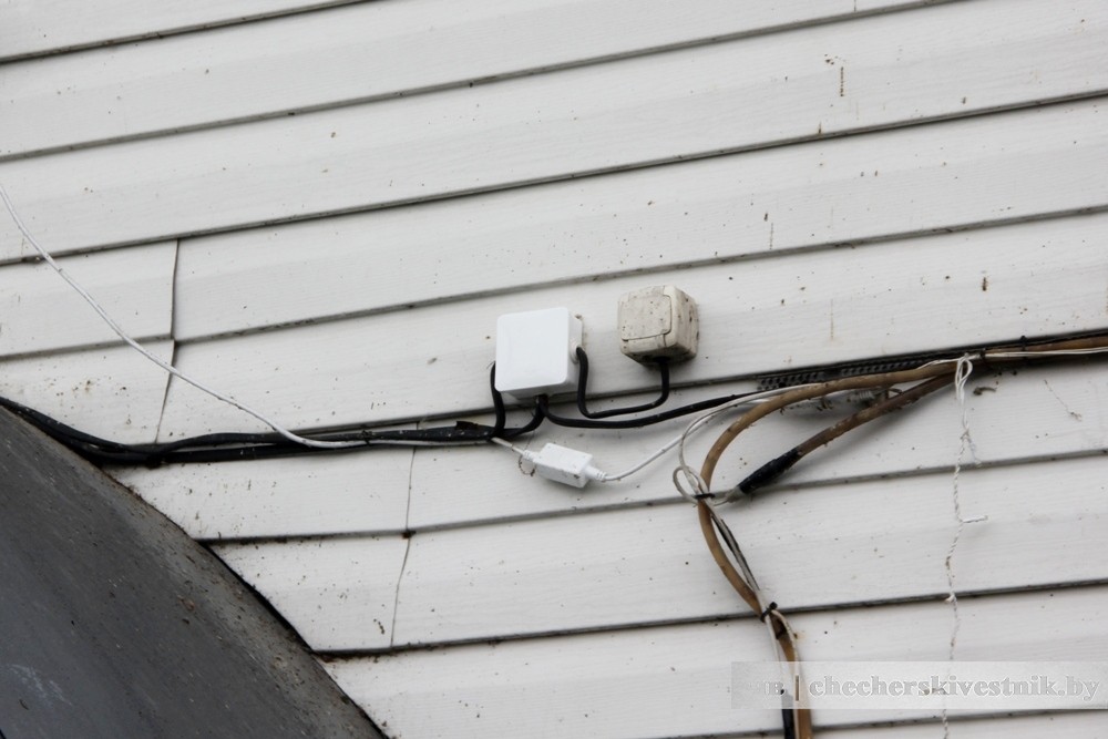 На фронтоне здания, в котором располагается магазин “Восточный”, на разветвительной коробке не была установлена крышка.