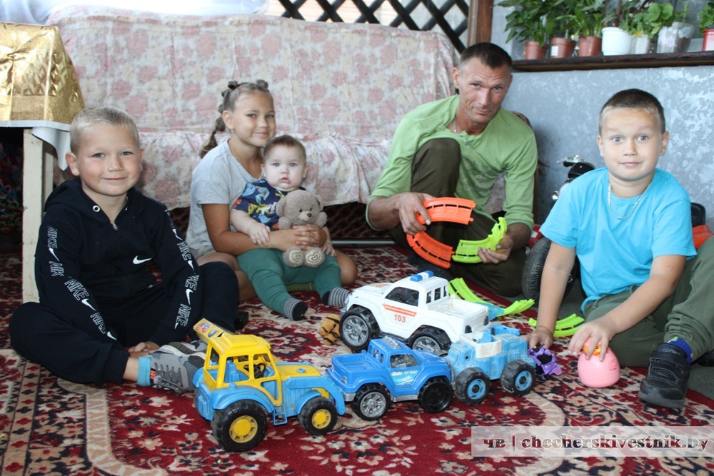 Трудовая занятость отца не позволяет в полной мере уделить внимание малышам. “Даже в День отца на работе допоздна”, – улыбается Никита Степанович. Но когда выпадает шанс, как им не воспользоваться. Бывает, то в настольные игры вместе с детьми поиграет, то на полу “проложит железную дорогу”. Иногда восстановит отлетевшую от игрушечной машинки запчасть. У мальчишек много различного транспорта “в гараже”. Дети постарше такими игрушками уже почти не увлекаются, а вот Дениска с любимым желто-синим трактором не расстается, везде таскает за собой. Вот и в этот раз схватил его обеими ручками и спрятался в микроавтобусе, отказавшись даже от совместного фото.