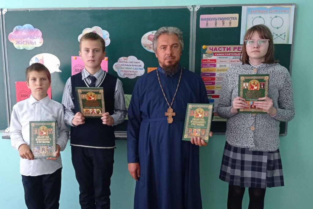 Также посетил факультатив “Основы духовно-нравственной культуры и патриотизма” в 6 классе. Он познакомил учащихся со структурой и основным содержанием Библии. Выступление сопровождалось примерами из жизни, притчами и цитатами из Священного Писания, что делало его живым и понятным для ребят.