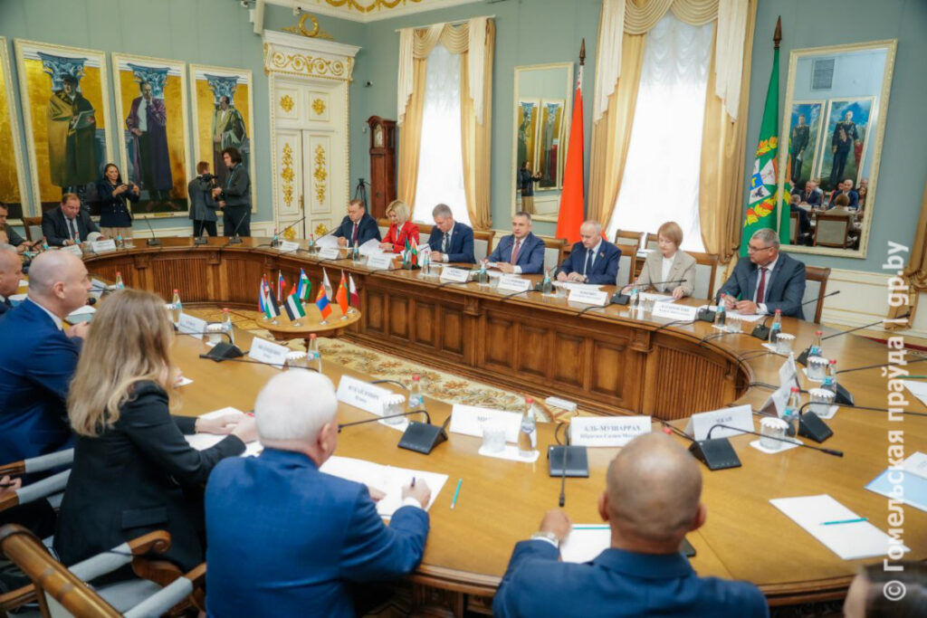 Во Дворце Румянцевых и Паскевичей председатель облисполкома Иван Крупко встретился с руководителями дипломатический миссий иностранных государств, аккредитованных в Республике Беларусь, руководителями делегаций-партнеров Гомельской области.