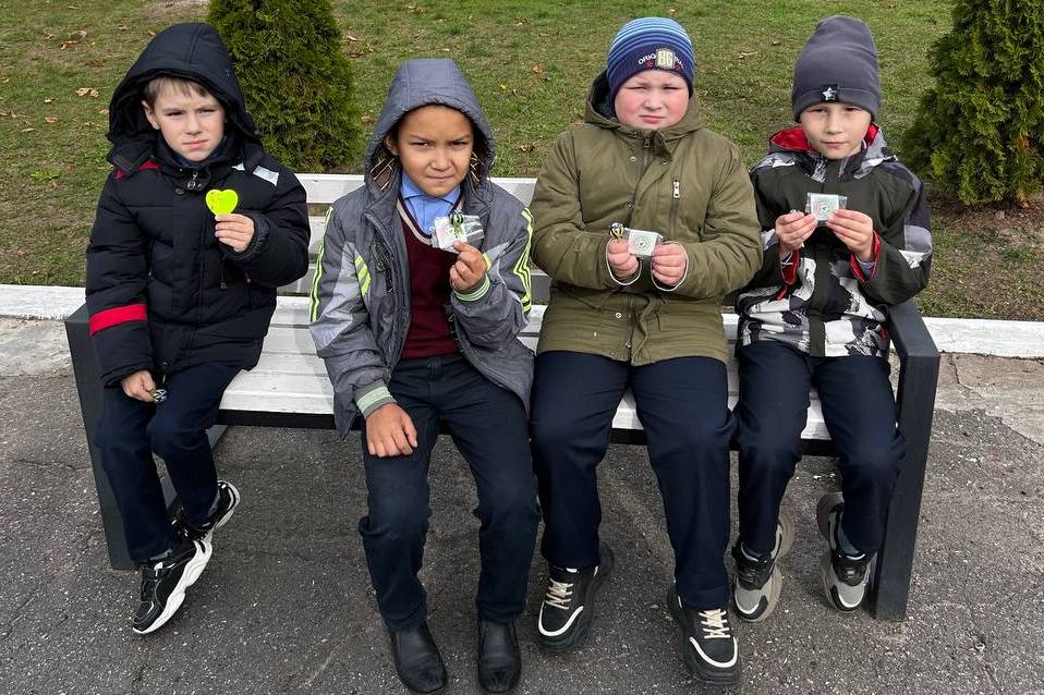 На память о встрече инспекторф вручили мальчишкам и девчонкам маленькие, но такие необходимые атрибуты одежды, фликеры.