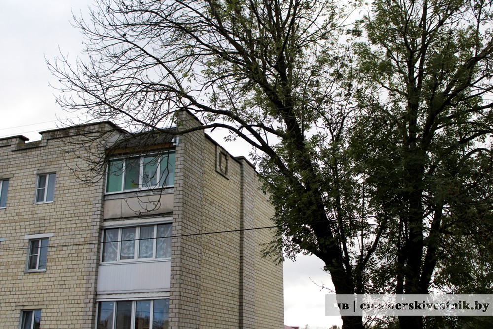 Жительницу Чечерска беспокоит состояние старого ясеня, произрастающего на углу многоквартирного дома по ул. Первомайской.