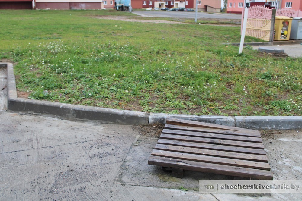 Инженерное сооружение временно прикрыли деревянным щитом. Однако, как поясняет женщина, это создает определенную угрозу транспорту: в вечернее и ночное время щит плохо виден и служит преградой на пути автомобиля, что может стать причиной дорожно-транспортного происшествия.