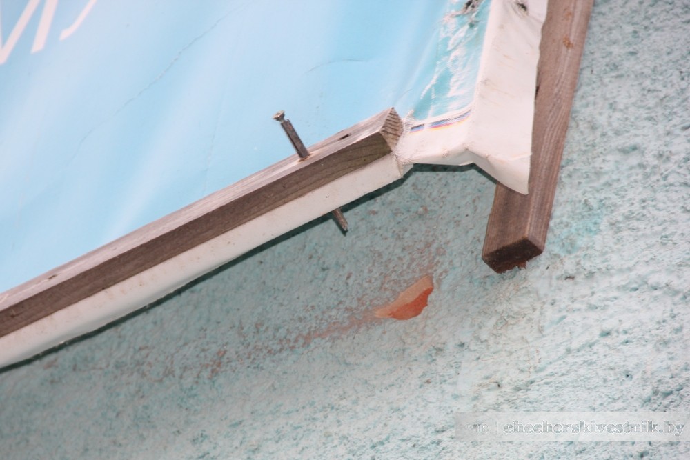 Жители Чечерска акцентировали внимание “ЧВ” на состоянии баннера, расположенного на торце здания по улице Первомайской, 15.