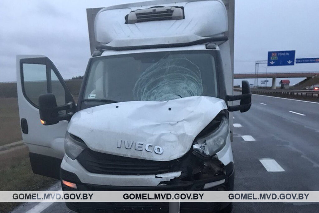 30-летний водитель автомобиля “Ивеко”, направлявшийся из Гомеля в сторону Минска, совершил наезд на 65-летнего пешехода. Мужчина шел по проезжей части и не имел на одежде световозвращающих элементов. От полученных травм пешеход скончался на месте происшествия.