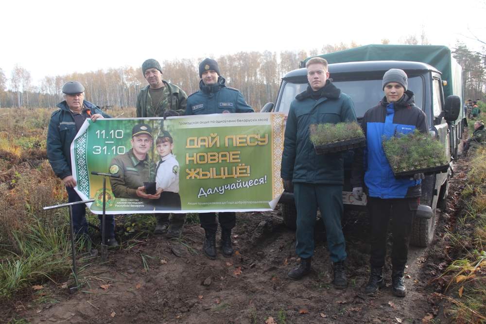 Масштабная осенняя экологическая акция “Дай лесу новае жыццё!” подарила Чечерщине новый лес. Общими усилиями всего за три недели было высажено 108 000 сеянцев сосны.