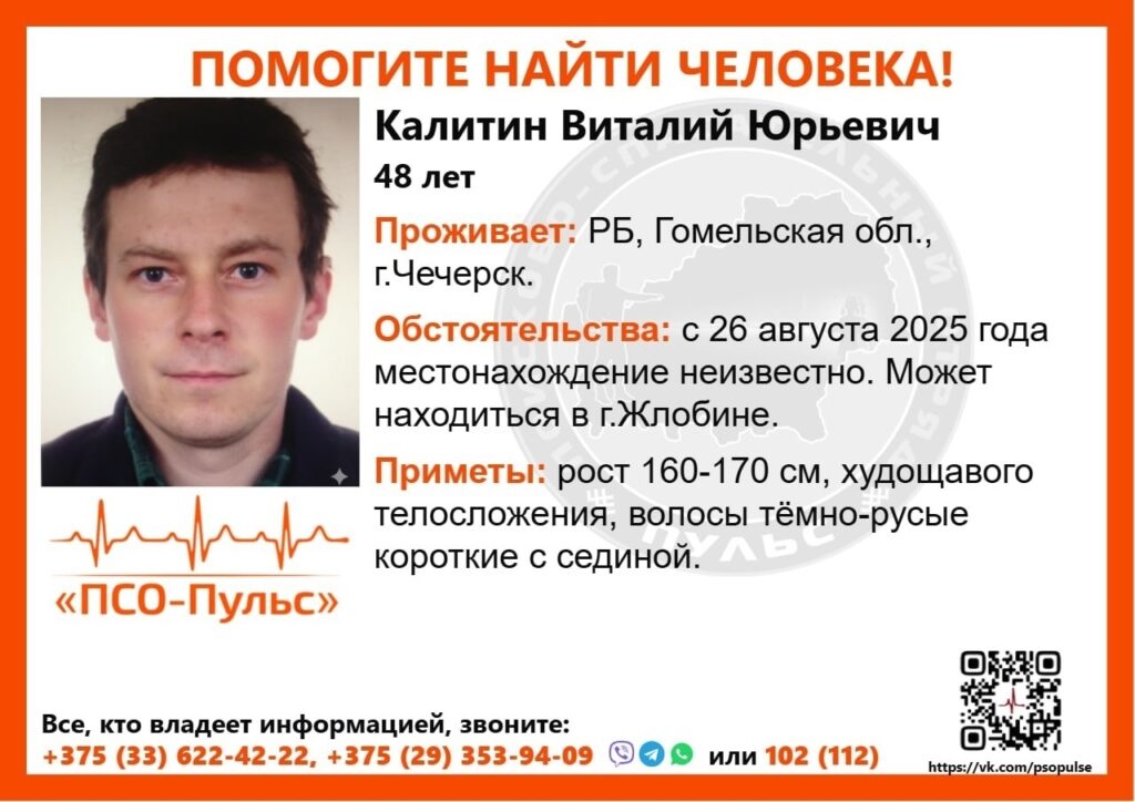 Обстоятельства: с 26 августа 2025 года местонахождение неизвестно. Может находиться в г. Жлобине.