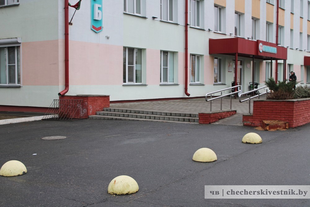 Пандус у здания Чечерской ЦРБ оградили дорожными полусферами