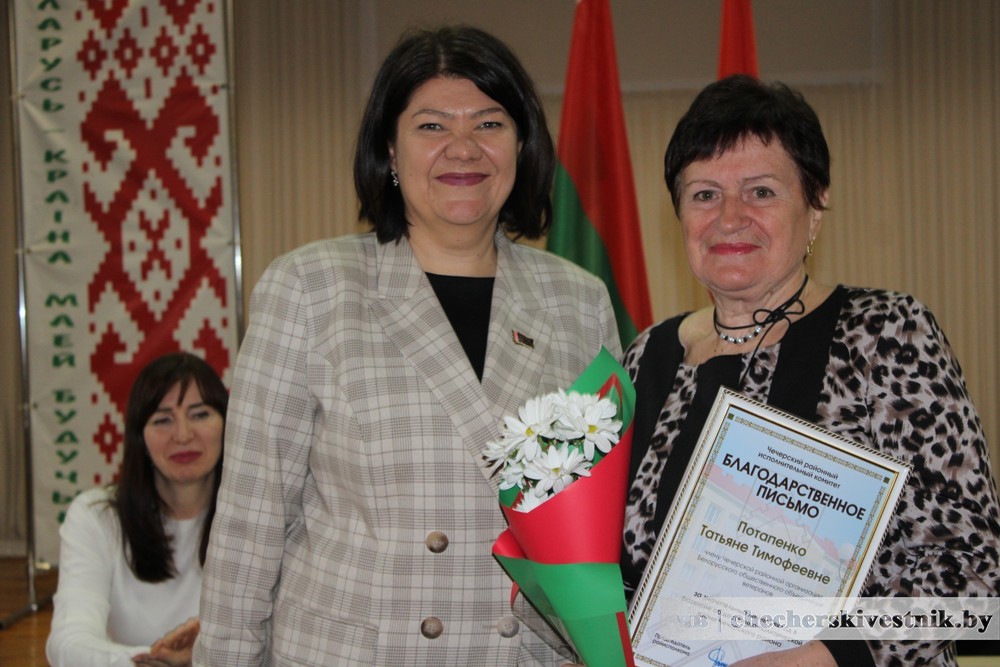 Ветераны Чечерщины не остаются без внимания и всегда находятся в поле зрения. Для них предусмотрены меры государственной социальной поддержки, обеспечиваются надлежащее торговое, медицинское и культурное обслуживание, создаются необходимые условия для комфортного проживания, решаются насущные проблемные вопросы, в том числе нуждающейся категории граждан, и многое другое. В то же время ветераны края не просто пенсионеры и люди пожилого возраста. Многие из них проявляют активную жизненную позицию. Об этом в своем докладе подробно рассказала председатель райсовета ветеранов Анна Корхова, отметив, что люди старшего поколения – настоящие патриоты, золотой фонд страны. Они принимают участие во всех важных общественных делах и политических событиях, районных мероприятиях, диалоговых площадках, тематических митингах, в волонтерском движении и благотворительных акциях. Встречаясь с молодежью, формируют у юного поколения нравственно-патриотические качества, передают накопленный опыт и мудрость жизни. Они – пример неугасимой энергии, позитива, гражданской ответственности и готовности быть нужными обществу и своей малой родине.