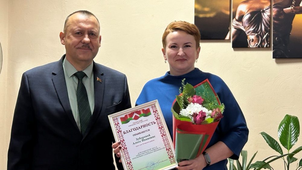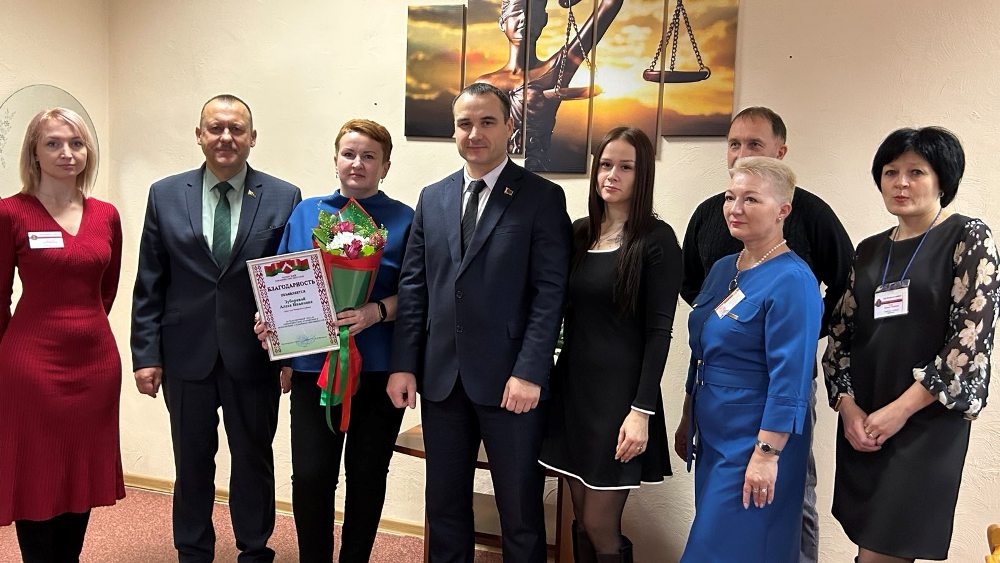 Он поздравил весь коллектив суда и вручил за безупречный труд и добросовестное отношение к исполнению служебных обязанностей Благодарность районного Совета депутатов судье Алесе Зуборевой.