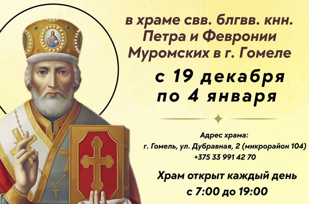 Ковчег с частицей мощей святителя Николая Чудотворца с 19 декабря по 4 января будет пребывать в храме святых благоверных князей Петра и Февронии Муромских.
