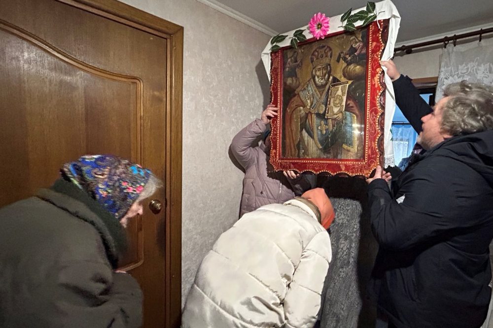 Целый год святой образ был в домовладении семьи Пастушенко. Семья говорит о том, что все то время, пока святыня находилась у них, чувствовалась огромная ответственность за поступки и отношение к жизни. В их доме прошла совместная молитва, которую возглавил настоятель храма Преображения Господня, отец Геннадий. И вот икона-свеча отправилась на новое место. Торжественным ходом по деревенской улице шли священник и верующие с молитвами и песнопениями. Икона была перенесена в дом Дубровских и будет находиться там на протяжении года.