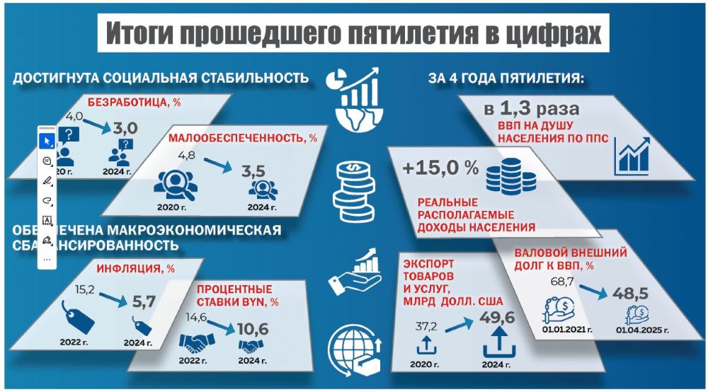 Премьер-министр Александр Турчин, представляя во время Всебелорусского народного собрания проект Программы социально-экономического развития Беларуси на 2026 — 2030 годы, сделал акцент: высокие результаты в экономике были достигнуты, несмотря на то, что на протяжении всех лет наша страна находилась под постоянным давлением, сталкиваясь с ковидными ограничениями, санкциями, геополитическими потрясениями.