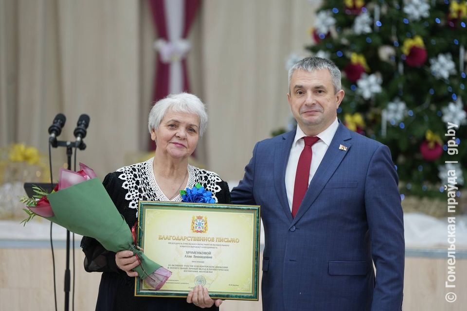 Ветеран педагогического труда Наталья Болотько, активист в сфере здоровья Анна Бандюк, председатель районной ветеранской организации Александр Куриленко, волонтеры Алла Храменкова и Лариса Прус отмечены за активную жизненную позицию, патриотизм и просветительскую деятельность на благо Гомельщины.