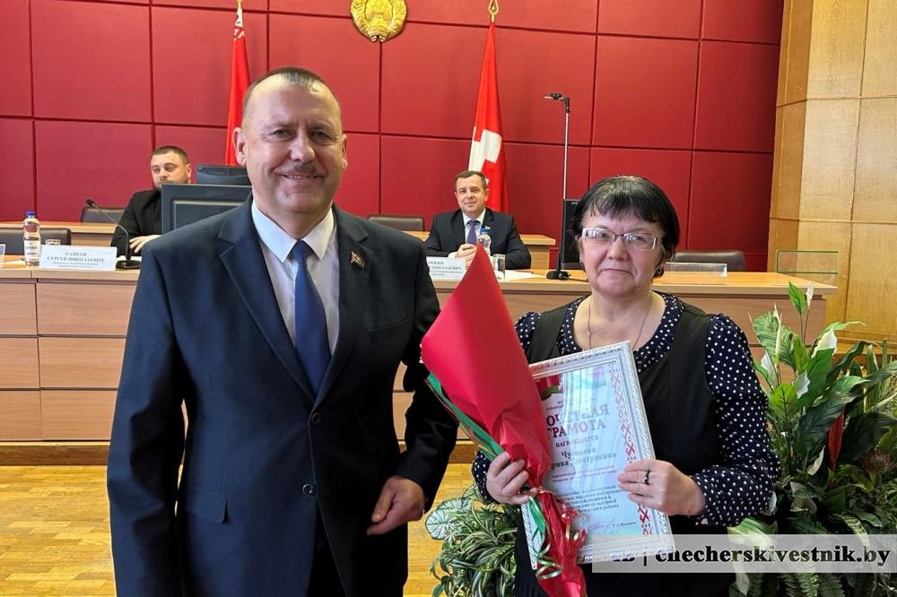 За многолетний плодотворный труд в средствах массовой информации и активную общественно-культурную деятельность почетной грамоты районного Совета депутатов удостоена ответственный секретарь районной газеты “Чечерский вестник” Ирина Чуенкова.