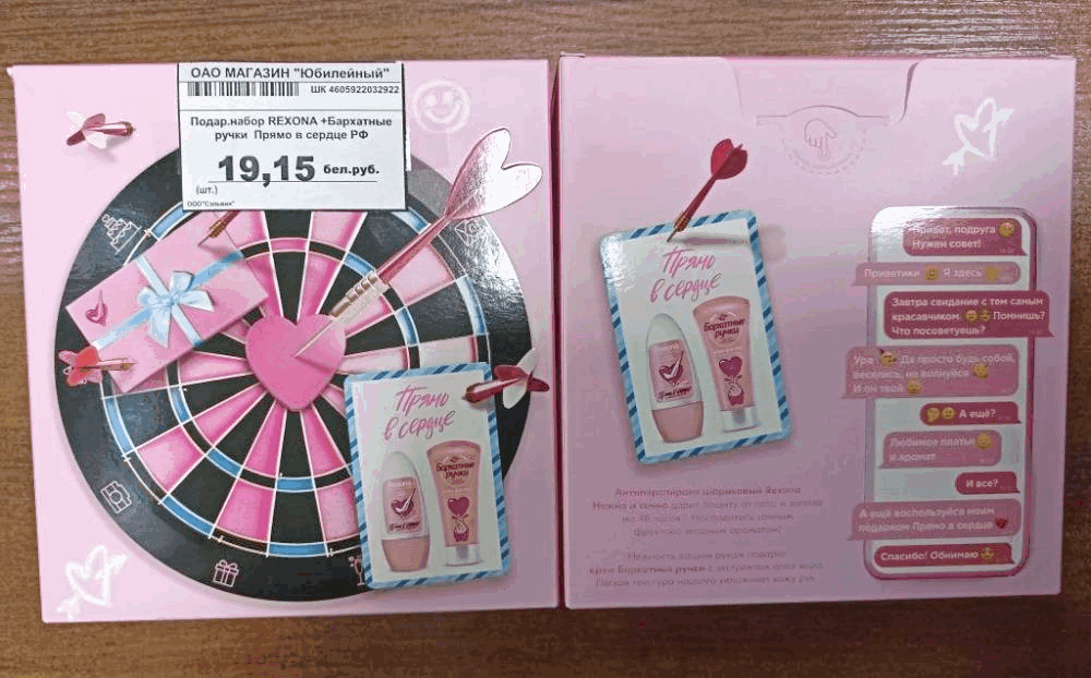 В “черном списке” оказался шариковый антиперспирант Rexona “Нежно и сочно”. Он продается как самостоятельный продукт, но также встречается и в составе наборов косметики.