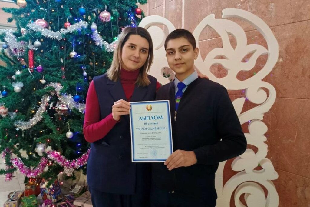 Учащийся первой городской школы Олег Колодин проявил глубокие знания родного слова. Он награжден дипломом третьей степени по учебным предметам “Белорусский язык” и “Белорусская литература”. Этот успех – результат кропотливой работы самого Олега и его учителя Анастасии Юрьевны Нечай.