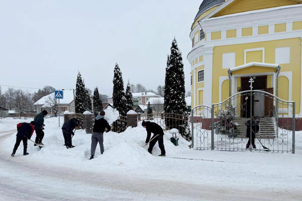В завершение мероприятия подучетные милиционеров навели порядок на территории храма: расчистили тротуары и подходные пути к одной из главных достопримечательностей Чечерщины от снежных заносов.