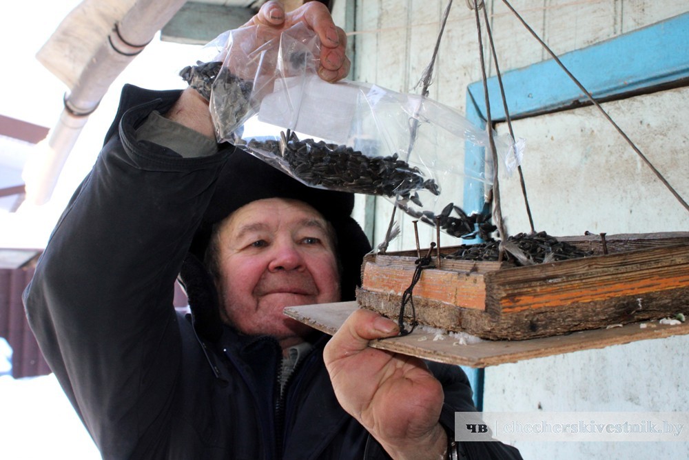 Нынешняя зима принесла немало радости детворе: лыжи, санки, ледяные горки и другие снежные забавы. Однако пышное белое покрывало представляет определенные трудности для птиц. Выжить в период зимовки им помогает чечерянин Николай Бобров.